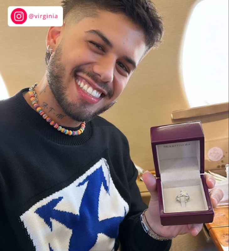 O anel ainda tem detalhes pensados especialmente para homenagear a influenciadora. O presente carrega desenhos da família, além de uma pedra roxa e foi avaliado em quase 40 mil reais.