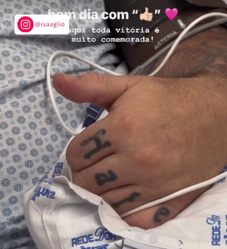 Isabella Aglio também mostrou o pai movendo um dedo