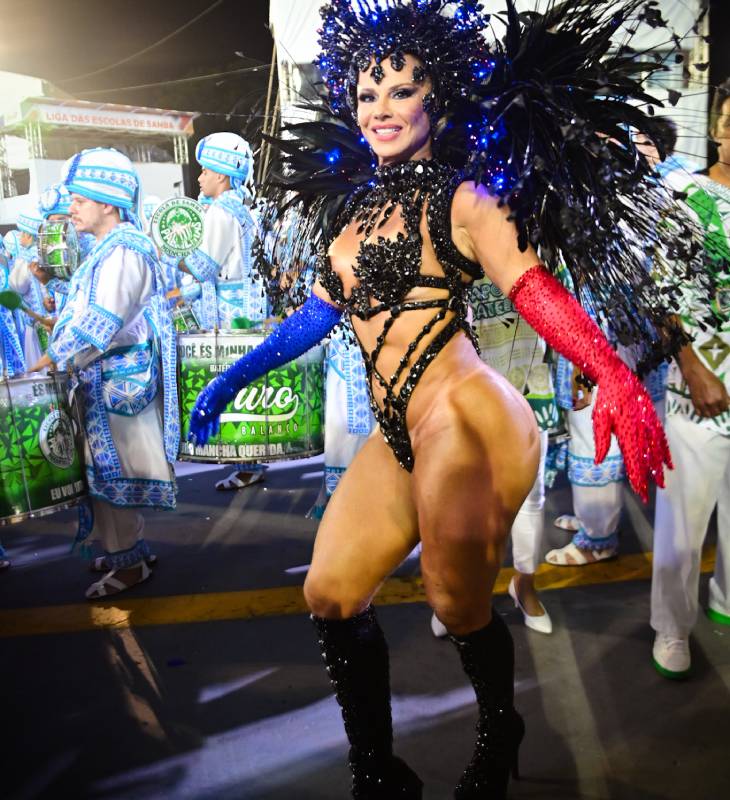Viviane Araújo faz homenagem à Daniela Mercury em desfile da Mancha Verde e curte primeiro dia de desfiles em São Paulo