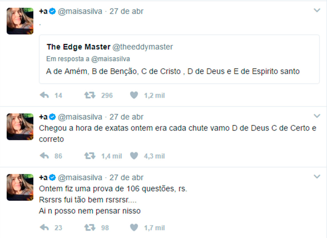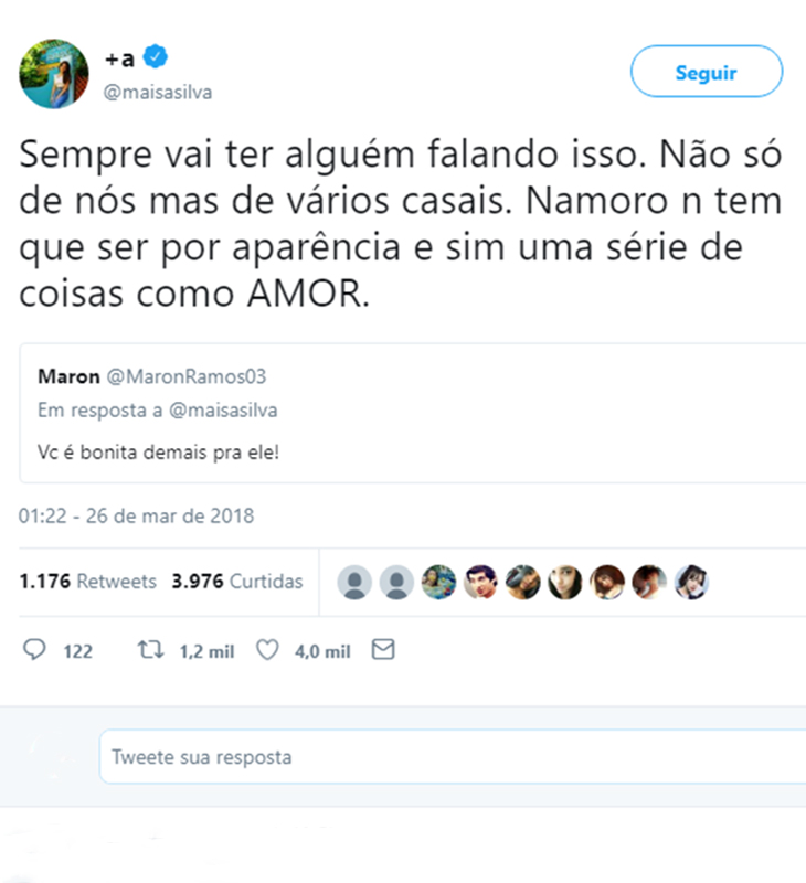 Em seguida, Maisa agradeceu o ator por responder as internautas de forma dura, alertando para os perigos de se admirar uma personagem como Joe.