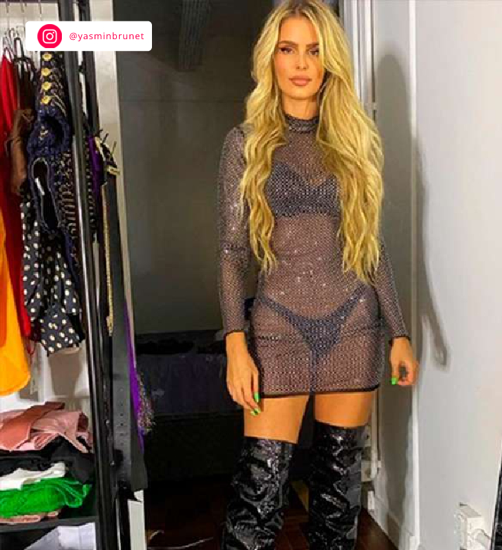 Solteira, Yasmin Brunet aposta em vestido justinho e curte mesma festa do ex-marido, Gabriel Medina