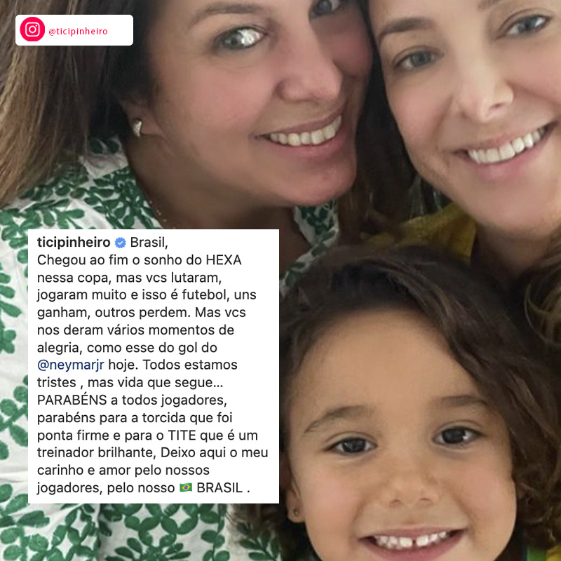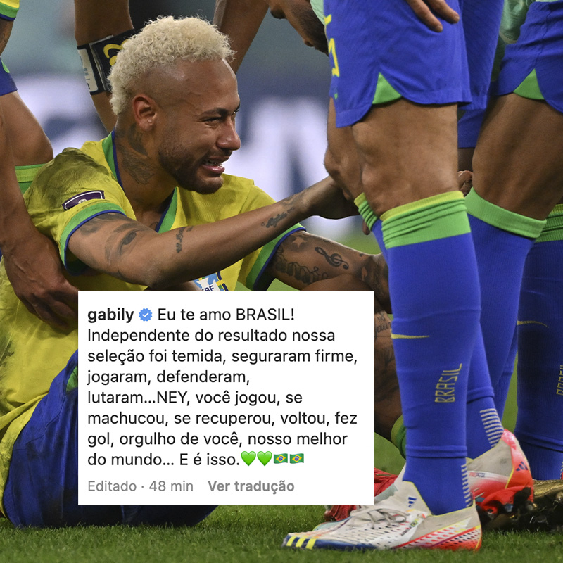 A seguir, confira os famosos que apoiaram a Seleção após a eliminação do Brasil na Copa do Mundo 2022: