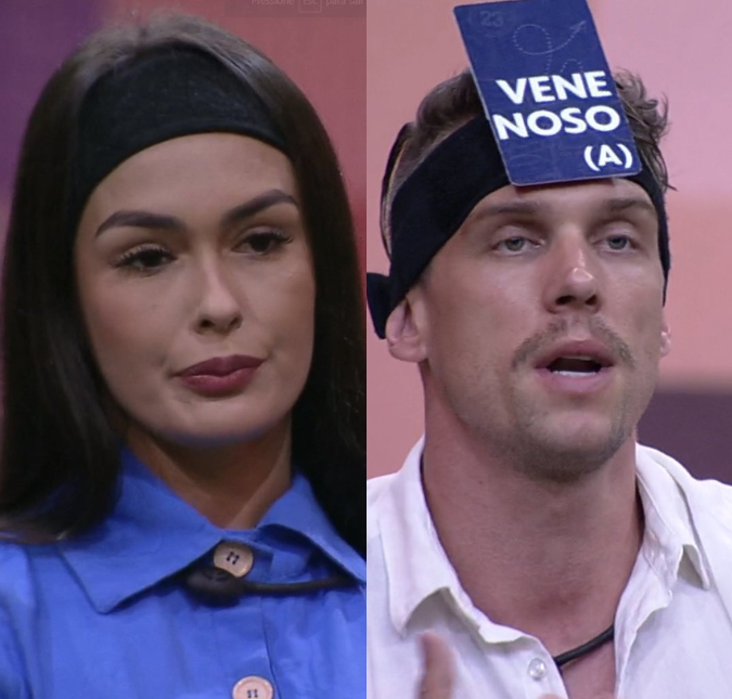 A dinâmica aconteceu com entrega de plaquinhas na testa, um clássico do BBB! A ideia do jogo era escolher duas plaquinhas com características negativas e apontar duas pessoas.