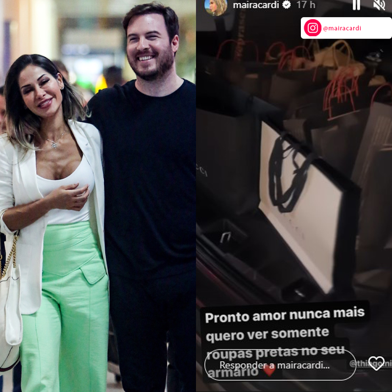 Como você acompanhou aqui no ESTRELANDO, Maíra Cardi surpreendeu seus seguidores ao mostrar a surpresa que preparou para o amado, Thiago Nigro. Em sua conta no Instagram, ela contou que comprou mais de 100 looks para o namorado. Foram tantas compras que o seu cartão chegou a ser bloqueado pelo banco.