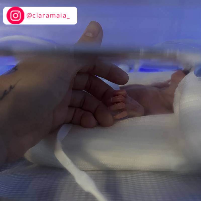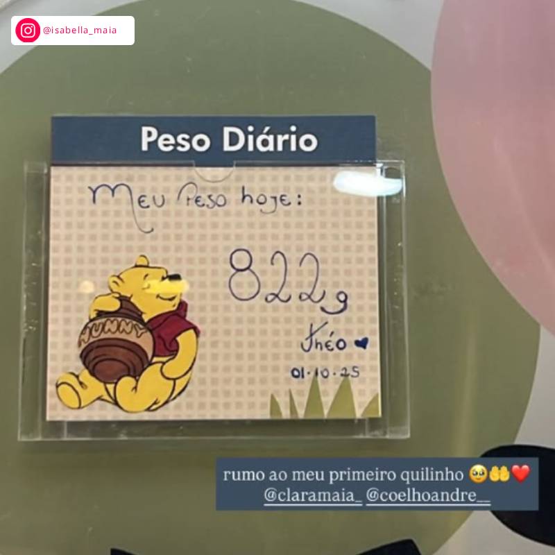 No dia 1º de setembro, Isabella Maia, irmã de Clara compartilhou uma foto de uma plaquinha que mostra o peso de Theo. E não é que esse guerreirinho já está com quase seu primeiro quilo? Segundo a imagem, o bebê já pesa 822 gramas.