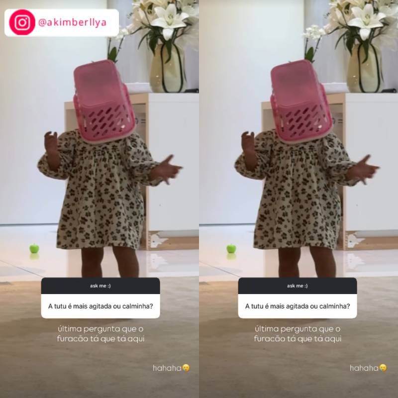 Alerta de fofura! Amanda Kimberlly está preservando a imagem de sua filha, a pequena Helena, fruto de um envolvimento com Neymar Jr., mas sempre que posta um registro da pequena deixa os fãs babando. No dia 24 de outubro, a influenciadora aproveitou uma caixinha de perguntas nas redes sociais para responder se a filha é uma criança mais tranquila ou agitada. No entanto, a imagem falou bem mais do que palavras, porque Amanda divertiu os internautas ao mostrar a menininha com um cestinho rosa na cabeça. Uma graça, não é? Confira outros momentos da pequena: