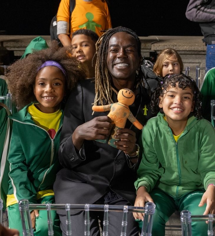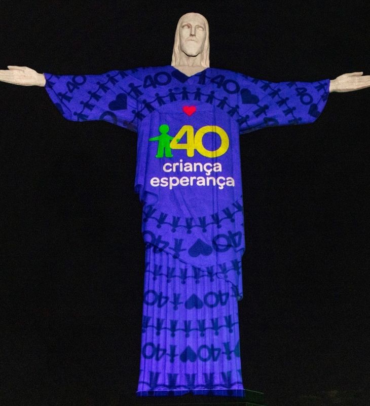 Jonathan Azevedo, Renato Aragão e Lívian Aragão celebram 40 anos do Criança Esperança aos pés do Cristo Redentor