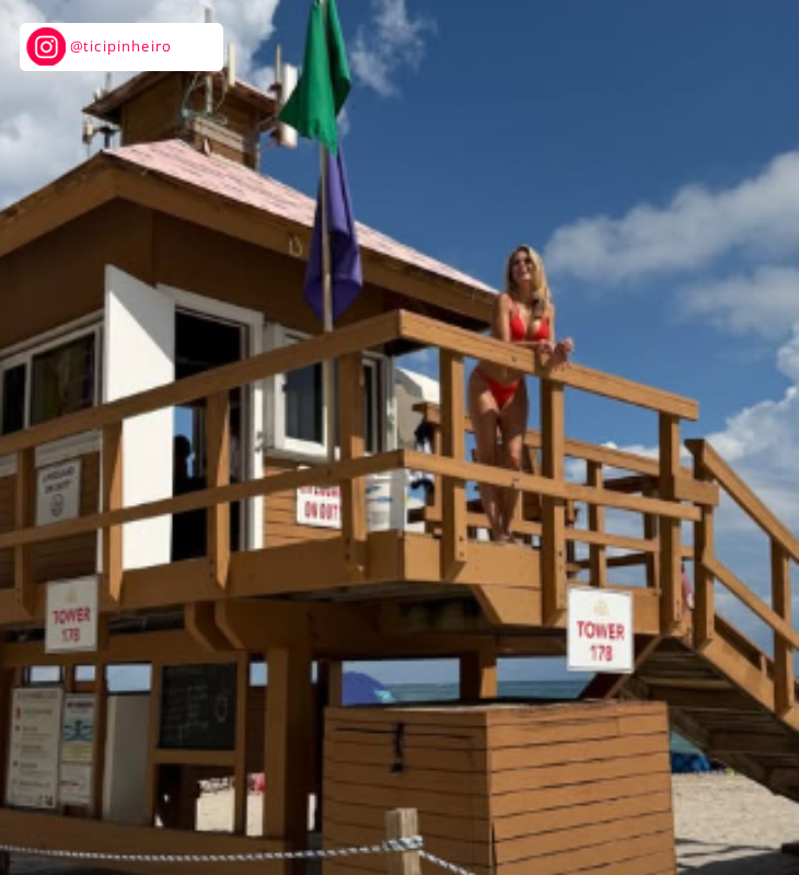 As famosas sempre deixam a web babando ao compartilharem fotos, ou serem flagradas usando biquínis. Esse é o caso de Ticiane Pinheiro, que durante viagem para Miami, nos Estados Unidos, posou com um modelo vermelho - bem no estilo baywatch, série norte-americana de sucesso - e arrasou. A seguir, confira outras famosas que também arrasaram usando a peça!