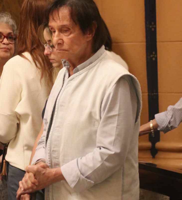 Roberto Carlos vai à missa de sétimo dia da irmã, que morreu aos 90 anos de idade