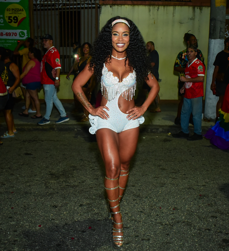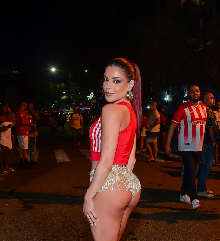 Gkay rouba a cena com look que deixa bumbum à mostra para ensaio do Salgueiro