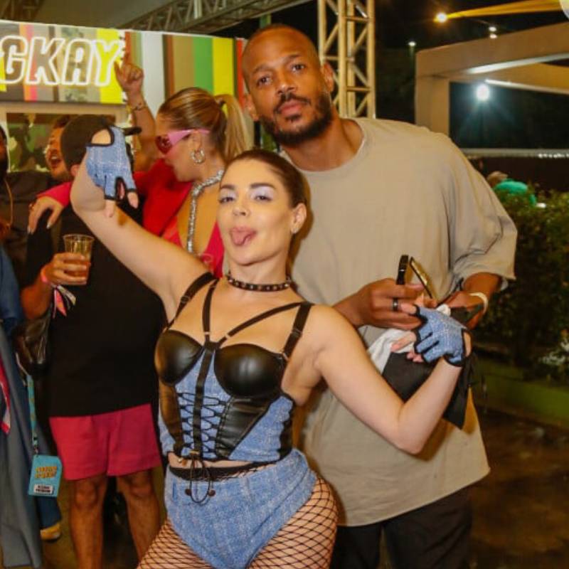 Viviane Araújo troca beijos com Guilherme Militão em ensaio de rua do Salgueiro