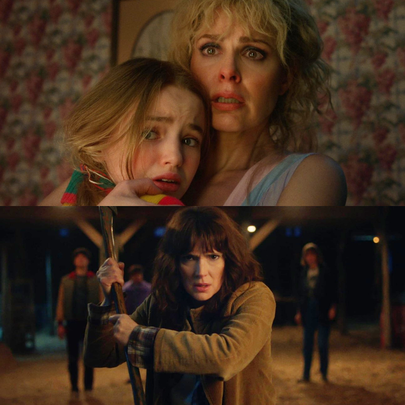 Montagem-Divulgação O amor materno também é algo indiscutível na trama. Mesmo sem saber o que seus filhos enfrentavam durante todos esses anos, Karen não exitou em se jogar em frente de um Demogorgan ao ver que ele avançou em sua filha, Holly. Ela foi até o fim para defender sua pequena, assim como Joyce na primeira temporada, que não desistiu de encontrar Will e foi uma das responsáveis por perceber que existia algo de diferente em Hawkins.