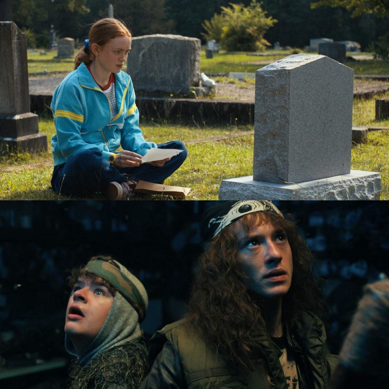 Montagem-Divulgação Outro tópico que vêm sendo abordado na série é o luto, desencadeando a depressão. Em princípio, quem carregava essa trama era Max, que após perder o irmão Billy em uma das batalhas, se encontrou em um profundo luto, que também a deixou com depressão. Ela se afastou de todos que amava e preferia ficar na sua - e acabou se tornando o alvo perfeito para o Vecna. Esses comportamentos estão sendo repetidos com o Dustin, que agora enfrenta a mesma dor que sua amiga, já que assistiu a um de seus melhores amigos, Eddie, morrer no Mundo Invertido. Na quinta temporada, Dustin está claramente de luto, mas ao invés de se isolar, ele está revoltado e querendo lutar por justiça. Cada um com seu luto, né?