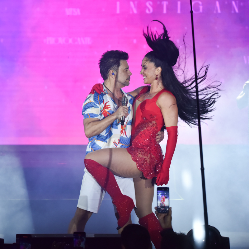 Em navio, Zezé Di Camargo dança com Graciele Lacerda e recebe filha caçula no palco