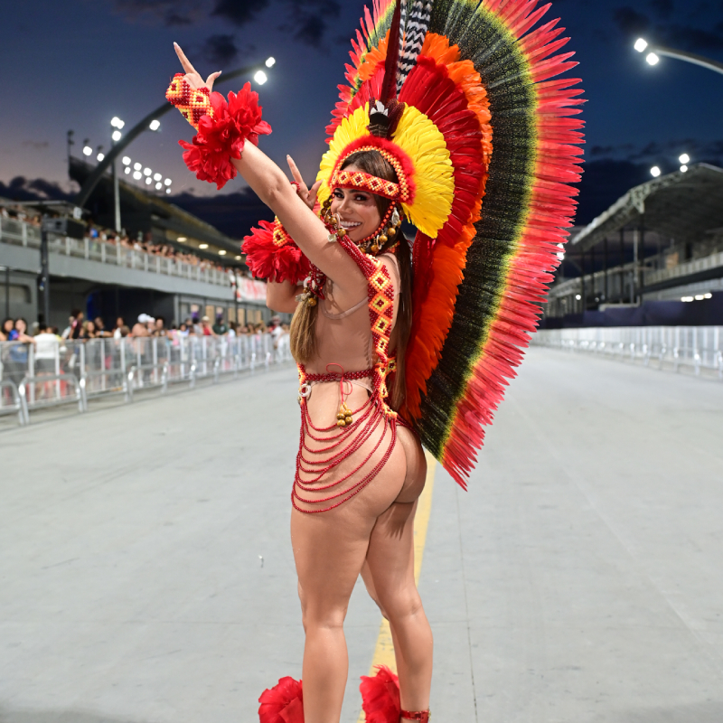 Lexa aposta em fantasia extravagante para seu primeiro ensaio técnico com a Dragões da Real