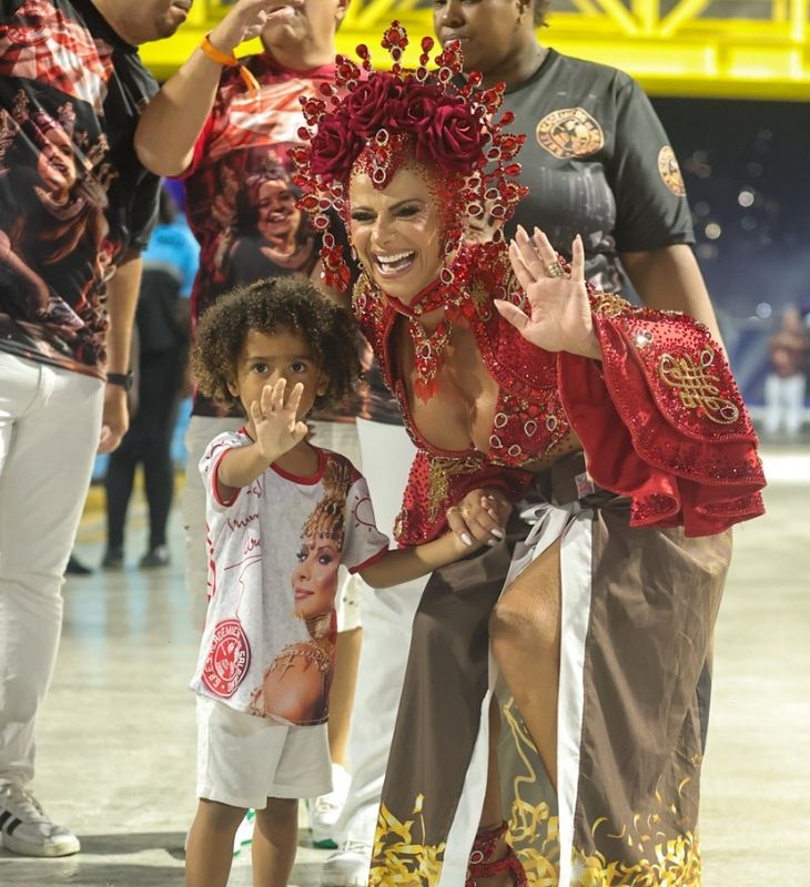 Viviane Araújo conta com presença do marido e do filho no último ensaio técnico do Salgueiro