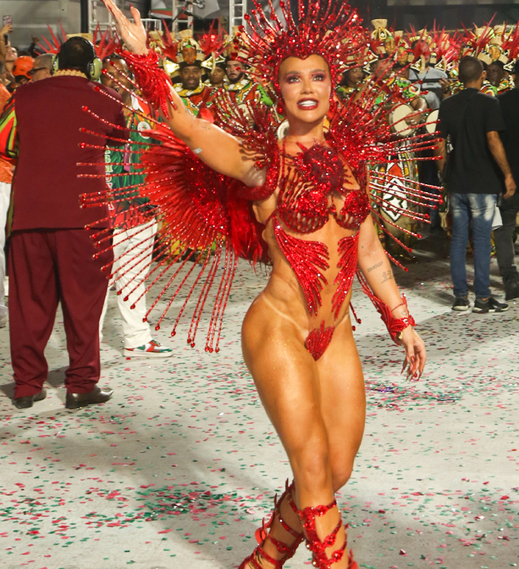 Em estreia como Rainha de Bateria, Virginia Fonseca é vaiada e tem problemas com costeiro e tapa-sexo em desfile da Grande Rio