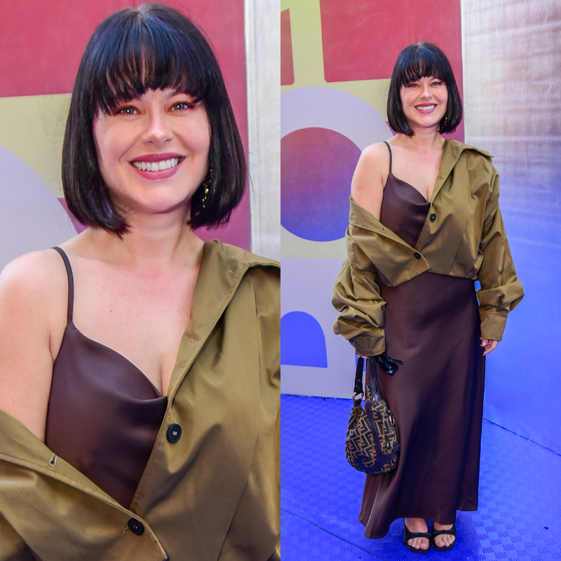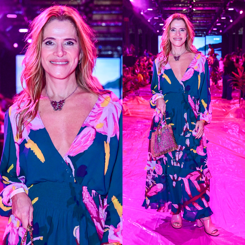 A apresentadora Mari Bridi, filha da jornalista Sônia Bridi, também compareceu ao último dia de desfiles. Ela estava de vestido marrom com camisa verde por cima.