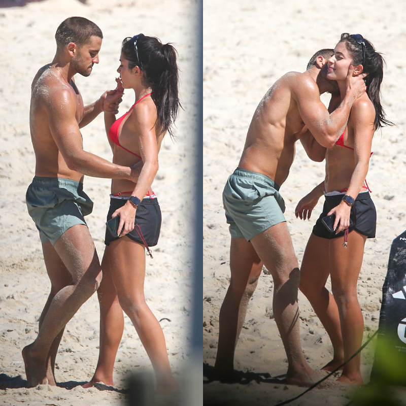 Jade Picon e André Lamoglia aparecem juntos na praia e trocam carinho