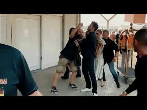 O casal estava em Veneza quando o homem foi imobilizado pelos seguranças após ser empurrado pelo ator