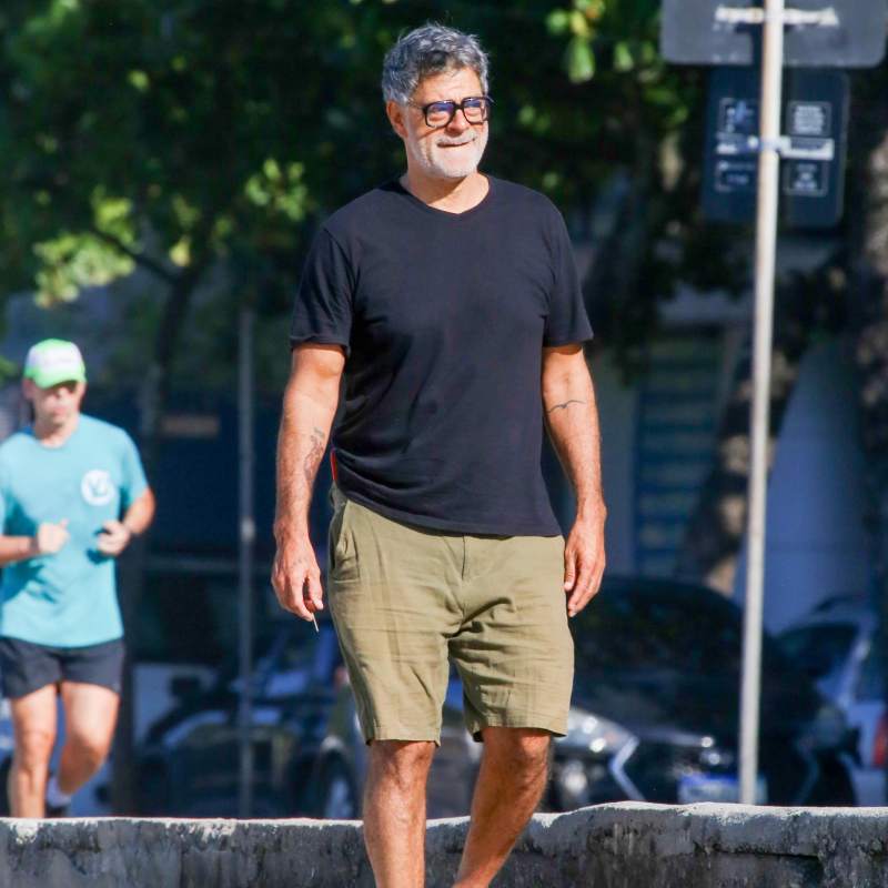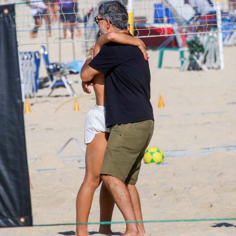 Eduardo Moscovis acompanha treino de futevôlei da filha no dia do aniversário dela