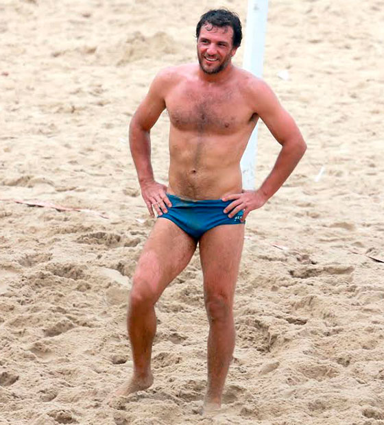 Rodrigo Lombardi mostra boa forma curtindo praia no Rio de Janeiro