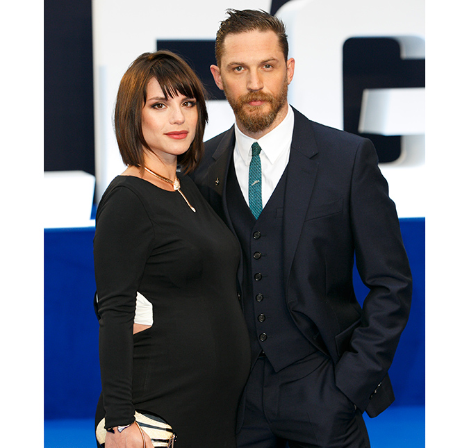 Esposa de Tom Hardy surpreende ao aparecer com barrigão de gravidez em première