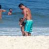 Cauã Reymond exibe o corpo sarado brincando com a filha, Sofia, na praia