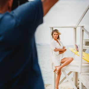 A apresentadora aparece em local paradisíaco fazendo fotos para campanha publicitária
