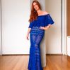 Divulgação E o azul realmente caí bem em Marina. Neste outro vestido, azul roial, também rendado, ela aparece arrasando, com a peça longa, mas cheia de transparência. Nós já queremos um igual e vocês?