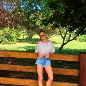 Divulgação Quem não desejou estar no lugar de Marina Ruy Barbosa nessa foto, que jogue a primeira pedra! A atriz postou uma sequência de cliques em sua conta no Instagram, que registrou durante passeio em um sítio paradisíaco, em um dia ensolarado. A bela posou com um lindo shorts jeans e uma blusinha estilo cropped, com uma renda toda trabalhada na transparência. Com um top branco por baixo, a diva pareceu estar aproveitando o calorzão do dia. Arrasou, sim ou com certeza?