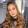 Divulgação Os pretinhos básicos não ficam tão básicos assim em Marina, já que ela acaba ficando com um visual arrasador, como neste acima. Na imagem, ela veste um vestido todo rendado nos braços.