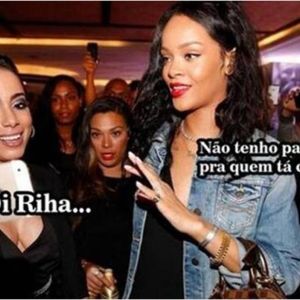E quando Rihanna veio ao Brasil em 2014, Anitta, super fã da cantora, fez de tudo para chegar pertinho dela e tentar tirar uma foto. Mas parecia que RiRi não estava correspondendo aos esforços da brasileira. A cara de desinteresse de Rihanna serviu de inspiração para vários memes, sempre brincando com as tentativas malsucedidas de Anitta com sua diva.