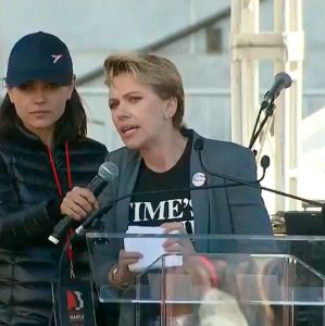 Divulgação Scarlett Johansson subiu ao palco e fez um discurso à multidão.