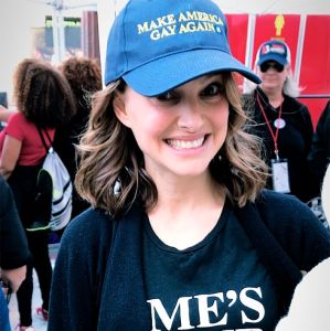 Divulgação Uma das maiores vozes do movimento, Natalie Portman também marcou presença. A atriz usou uma camiseta do movimento Time's Up e um boné com os dizeres, em inglês, Fazer a América Grande de Novo - um dos lemas mais usados pelo presidente Donald Trump durante sua campanha. Portman foi uma das celebridades que subiu ao palco para discursar.