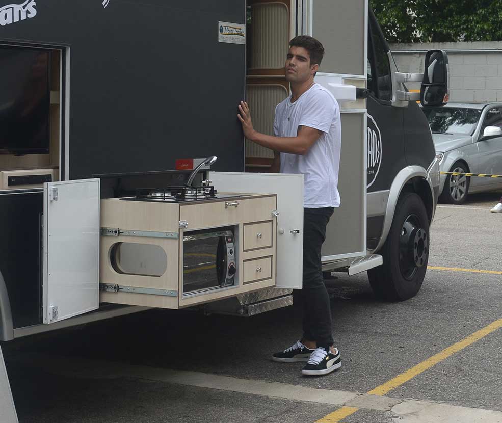 Caio Castro é flagrado com a namorada em motorhome que o levará até a Rússia para a Copa do Mundo