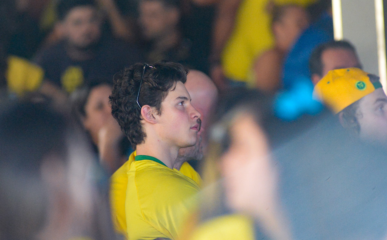 Em Goiânia, Shawn Mendes curte jogo do Brasil com camisa de Neymar, veja as fotos!