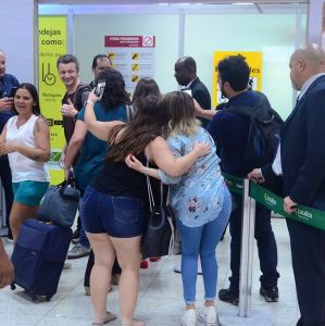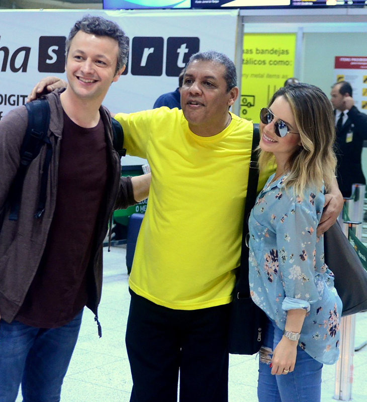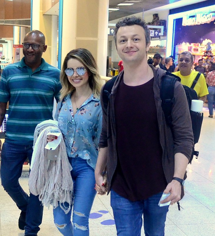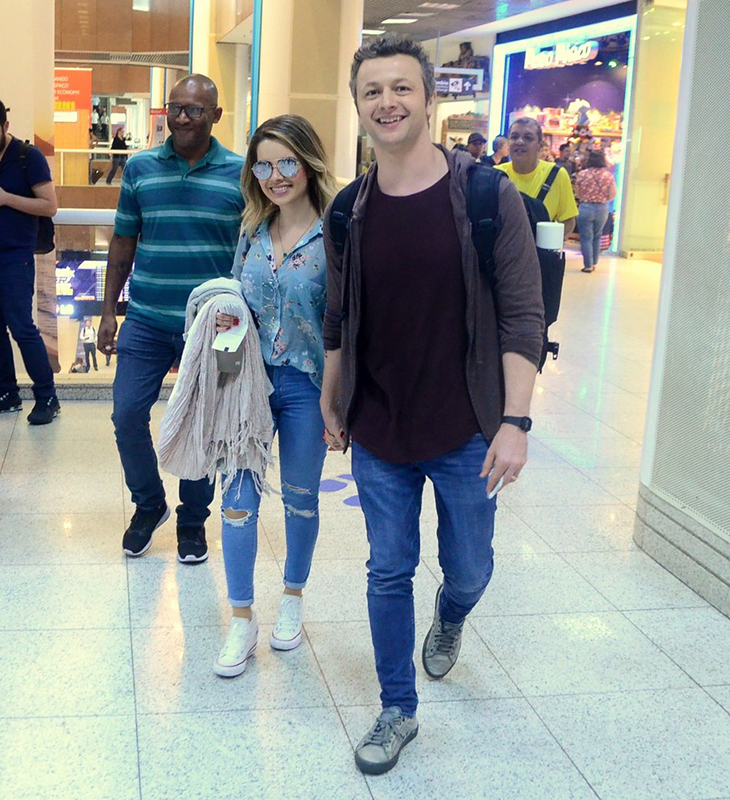 Sandy tira foto com fãs ao tentar embarcar em aeroporto no Rio de Janeiro com Lucas Lima