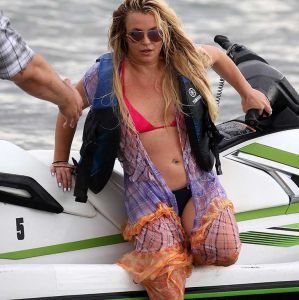 Britney Spears é clicada com o namorado em praia de Miami e acusa fotógrafos de alterarem fotos