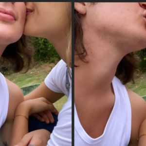 Em outra foto divulgada pelo cantor, Sasha apareceu dando um beijinho no rosto do amado. Recentemente, eles trocaram declarações em comemoração ao primeiro Dia dos Namorados juntos. Nem nos meus melhores sonhos, imaginei ser tão feliz como sou contigo. te amo, escreveu ele. E a filha de Xuxa retribuiu: Um dos presentes mais lindos que Deus me deu. Hoje é o primeiro de muitos e muitos e muitos dias dos namorados juntos (apesar de que todos os dias eu comemoro sua chegada na minha vida, a nossa amizade, e o nosso namoro) te amo, disse na ocasião.