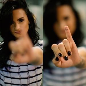 Em outro momento, a cantora publicou em seu perfil pessoal do Instagram um gif em que aparece mostrando sua tattoo no dedo mindinho. Enquanto ela aparece no fundo fazendo uma duck face com a mão desfocada, a imagem se transforma, agora com Demi desfocada ao fundo e sua nova tatuagem, uma carinha sorrindo. Na legenda, ela manda um recado: A vida é muito curta para você não tatuar o seu mindinho.