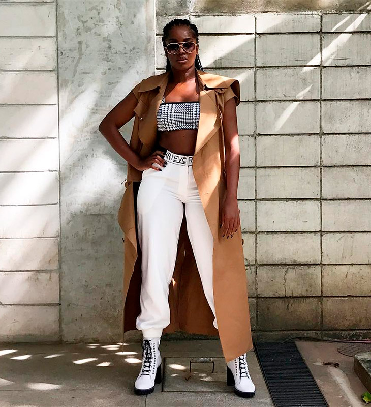 Divulgação Dona de um estilo único, Iza também já se rendeu ao truque. A cantora combinou top com calça oversized branca, coturnos da mesma cor e colete sobretudo da Skazi beje - quebrando a paleta de cores branco e preto, mas mantendo os tons neutros. Para compor o look, Iza contou com as dicas da profissional Bianca Jahara.