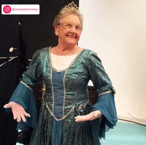 Palmirinha até mesmo se vestiu de princesa! Para comemorar os 90 anos da criação do Mickey Mouse, a cozinheira publicou a imagem acima com a seguinte legenda: Em homenagem aos 90 anos do Mickey, que está fazendo aniversário esse mês, me vesti de princesa. Para lembrar toda a magia da Disney. Gostaram? Estou parecida, amiguinha?