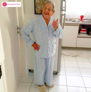 Outra dica superlegal da vovó, que adorava brincar com os filtros da rede social, era dar aquela organizada na vida: Anota a dica da vovó pras meninas modernas: pra dar conta de uma comidinha gostosa no meio da correria entre trabalho e filhos o segredo é se organizar para tudo dar certo. Depois do supermercado, no final de semana, separa duas horinhas pra cozinhar pra semana e congelar. Fiz muito isso. Ah, aproveita que os tempos são outros, e coloca o marido pra ajudar com a limpeza da casa. Escuta a vovó!