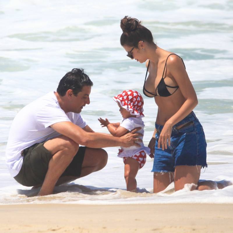 O ator estava com a esposa Sthéfany Vidal e a filha Aurora, de um ano de idade