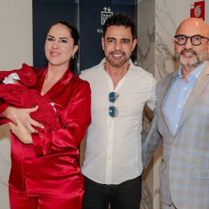 Zezé Di Camargo e Graciele Lacerda apresentam a pequena Clara Camargo ao deixarem maternidade