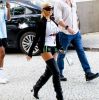 Christina Aguilera aposta em shortinhos, bota over the knee e óculos de sol futurista em passeio no Rio de Janeiro
