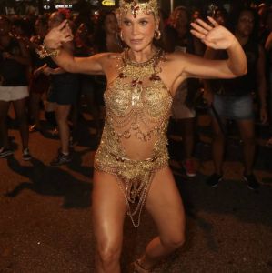 Flávia Alessandra relembra personagem de Duas Caras em ensaio do Salgueiro