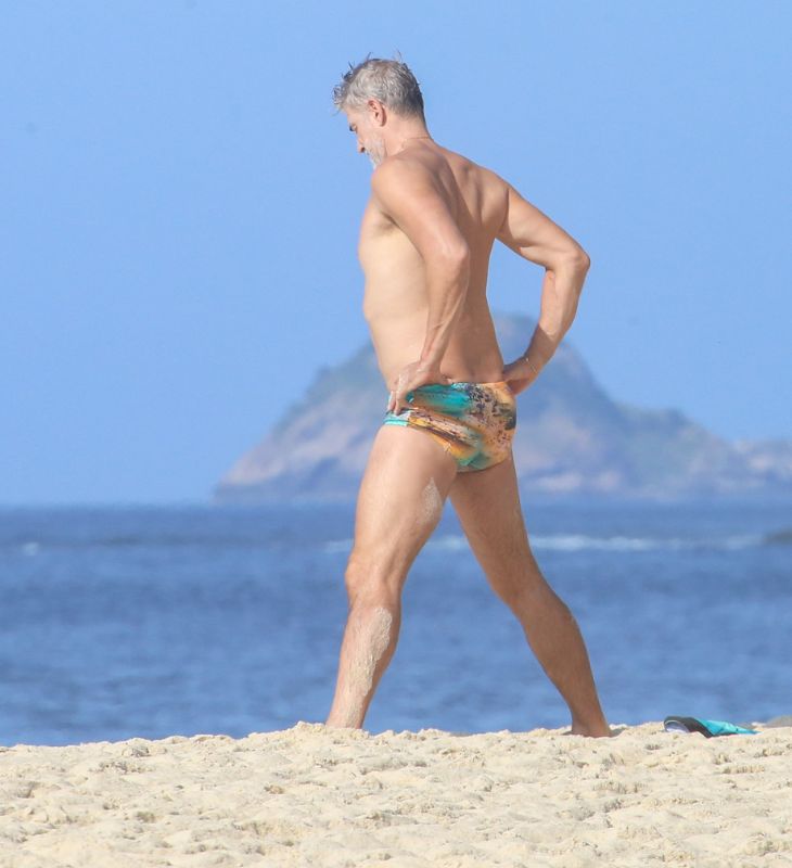 De sunga estampada, Gianecchini curte praia no Rio de Janeiro e ostenta físico sarado
