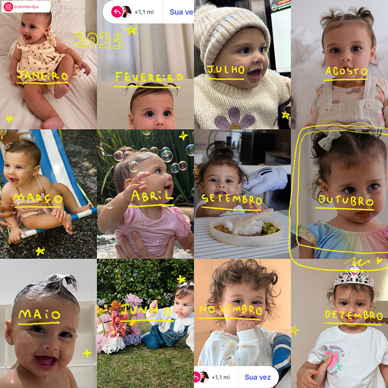 Em suas redes sociais, Amanda Kimberlly sempre compartilha momentos fofíssimos da filha Helena, de um ano, fruto do seu relacionamento com Neymar. No dia 21 de dezembro, a influenciadora fez questão de mostrar a evolução da pequena ao longo do ano. Amanda publicou uma foto de Helena em cada mês do ano e encantou os seguidores com tanta fofura.